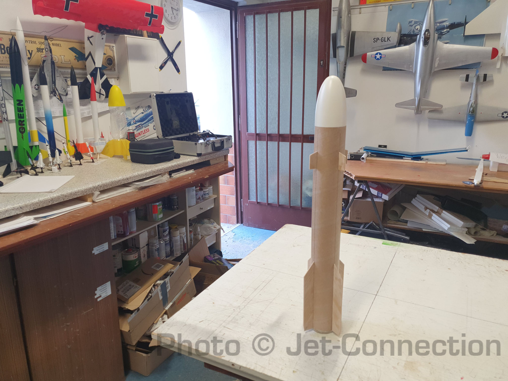 Die "Verstärkungsbleche" an den unteren Finnen werde ich nachträglich mit Epoxy ankleben. Die bringen noch mehr Stabilität und die Rakete sieht dem Original noch ein bisschen ähnlicher