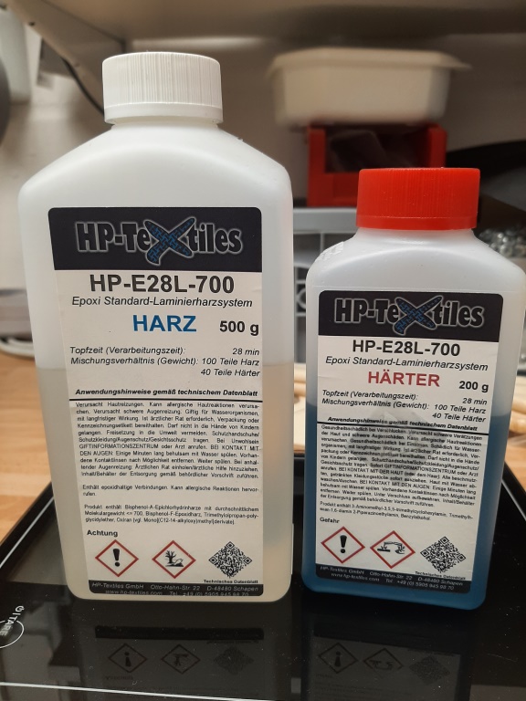 @ Thomas, ich verwende zum laminieren meiner Rohre das Harz HP-E28L-700 ebenfalls von der Fa. HP-Textiles. Damit habe ich sehr gute Erfahrung gemacht, es hat eine gute Viskosität, lässt sich mit 28 min Tropfzeit gut verarbeiten und ist auch recht preiswert. Und die Steifigkeit der Laminate ist aus meiner Sicht absolut in Ordnung  ! Andreas