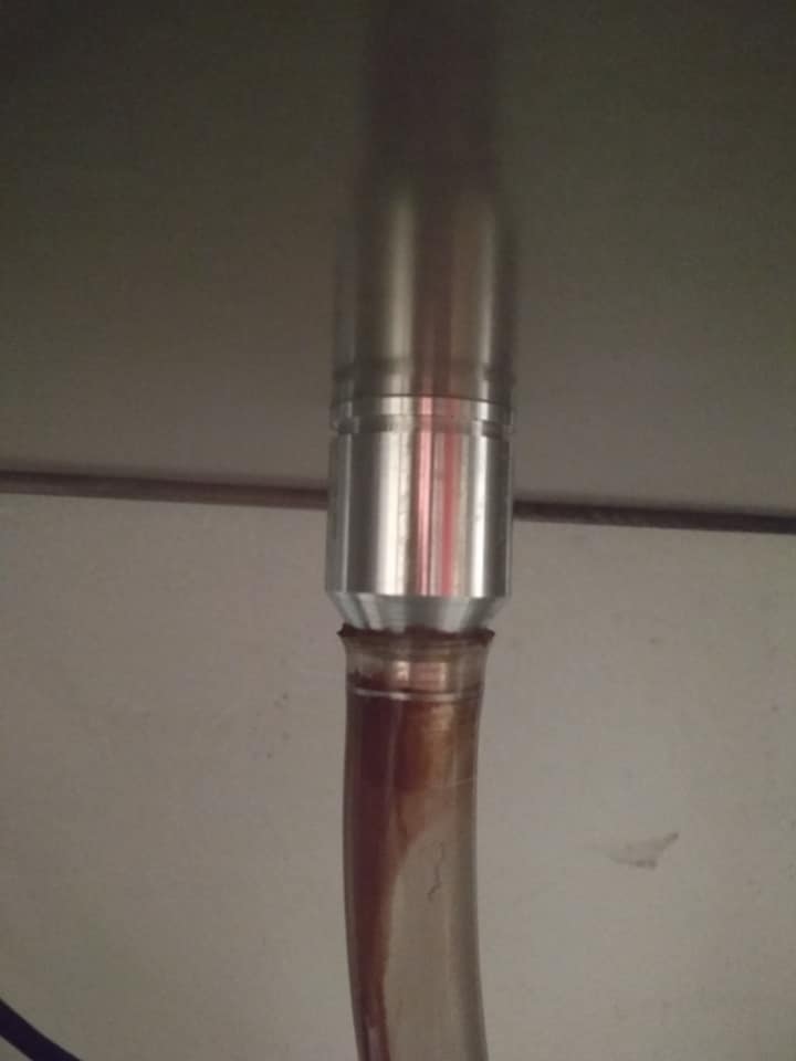 Das erste Teil ist gefertigt, zum testen habe ich mal einen Ablaufstutzen für den Kühlschmierstoff gedreht, ein Ablauf fehlt nämlich in der Wanne: