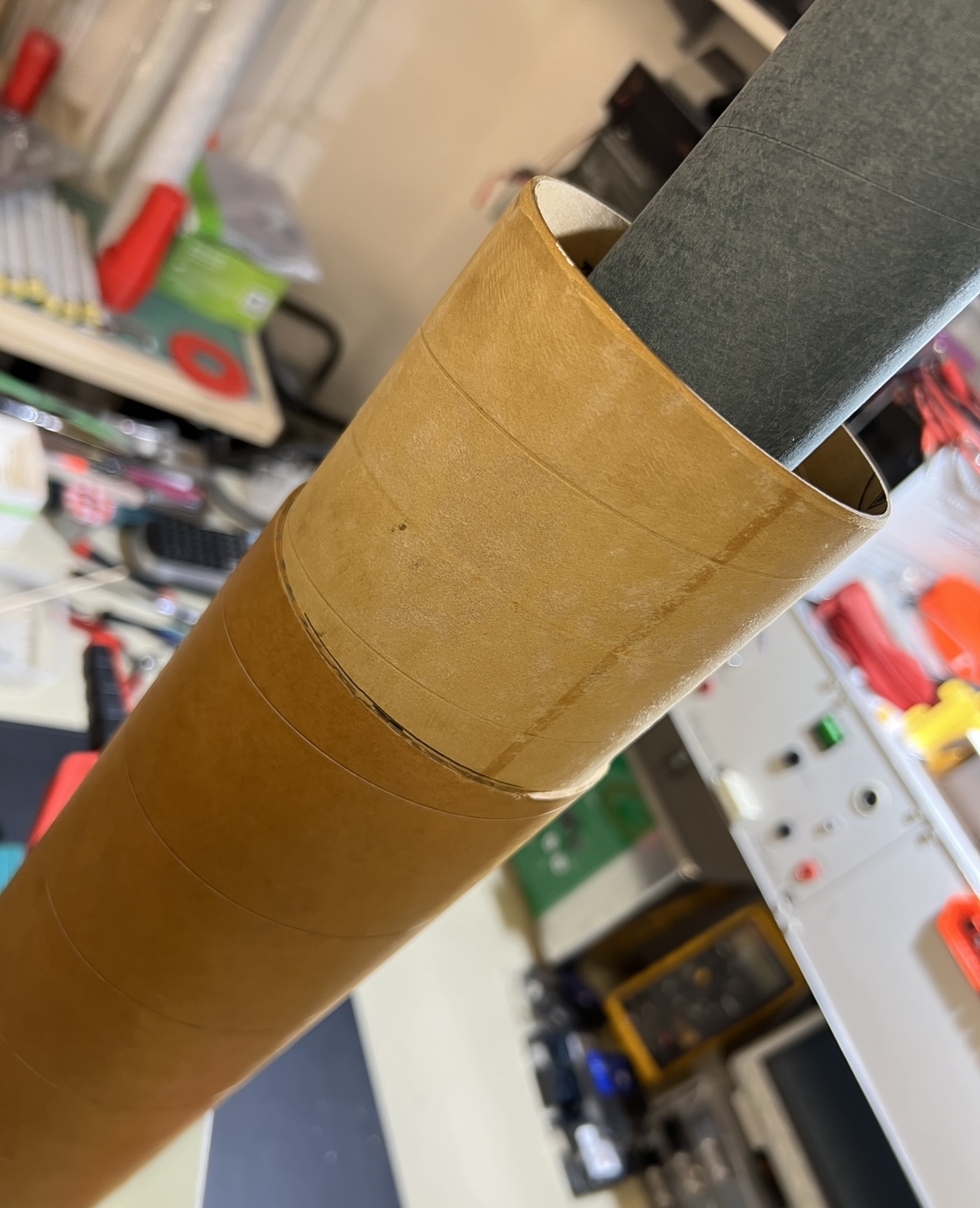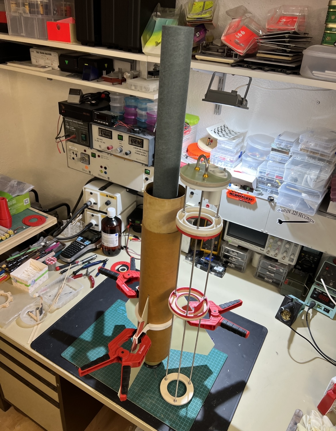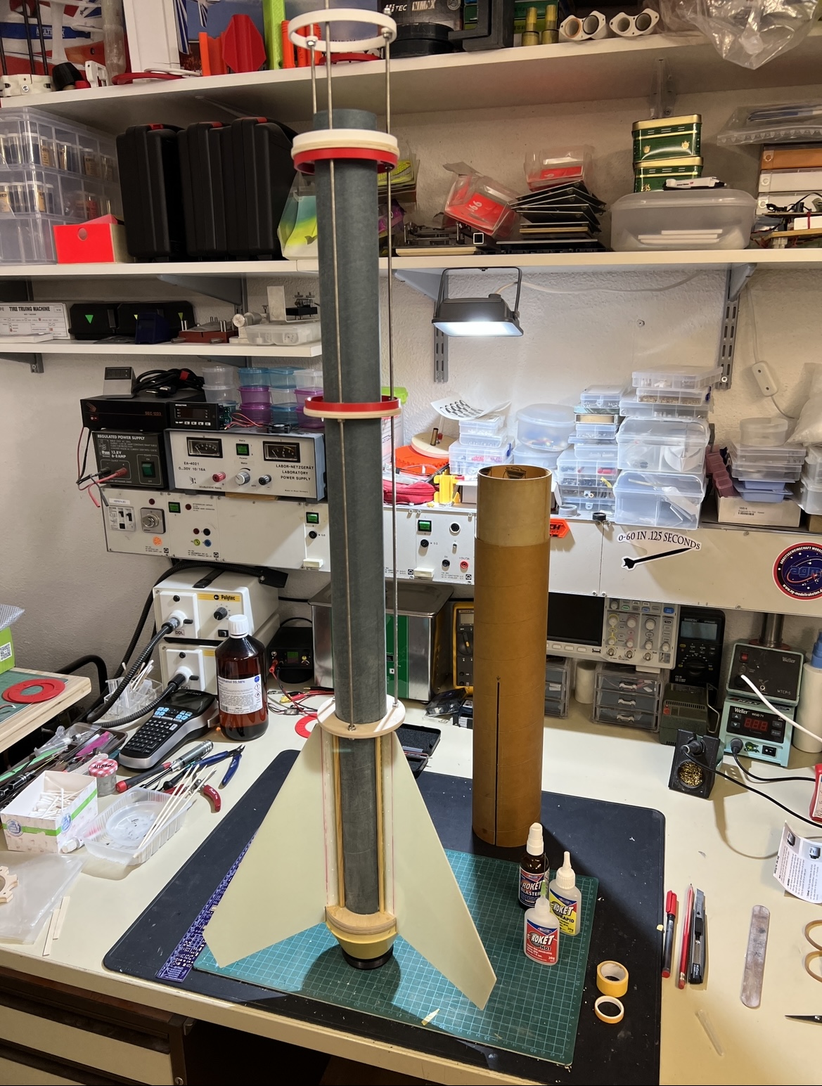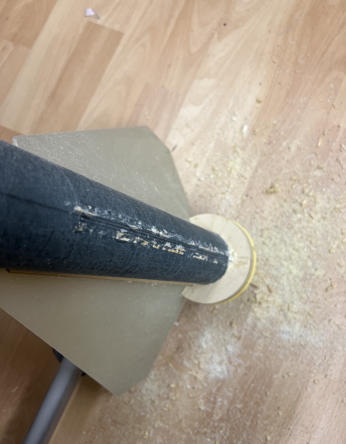 Endlich wurde das untere Körperrohr angebracht … dazu mussten erstmal alle Spante wieder von den Gewindestangen runter da sie den Aussendurchmesser des Couplers entsprechen .. Epoxy im Rohr inneren platziert … epoxy auf allen Klebeflächen aufgetragen … Und alles zusammengefügt … Ich hatte vorher die Finnen mit kleinen Aussparungen versehen um das ganze an den Klebestellen mit Kabelbindern zu fixieren und etwas Kraft auf die Flächen zu bekommen … Diese werden dann später durch die Aussenfillets verdeckt … Alles darf jetzt wieder trocknen … Hier schon mal ein kleiner Ausblick was draus wird :-) Grüße Marco