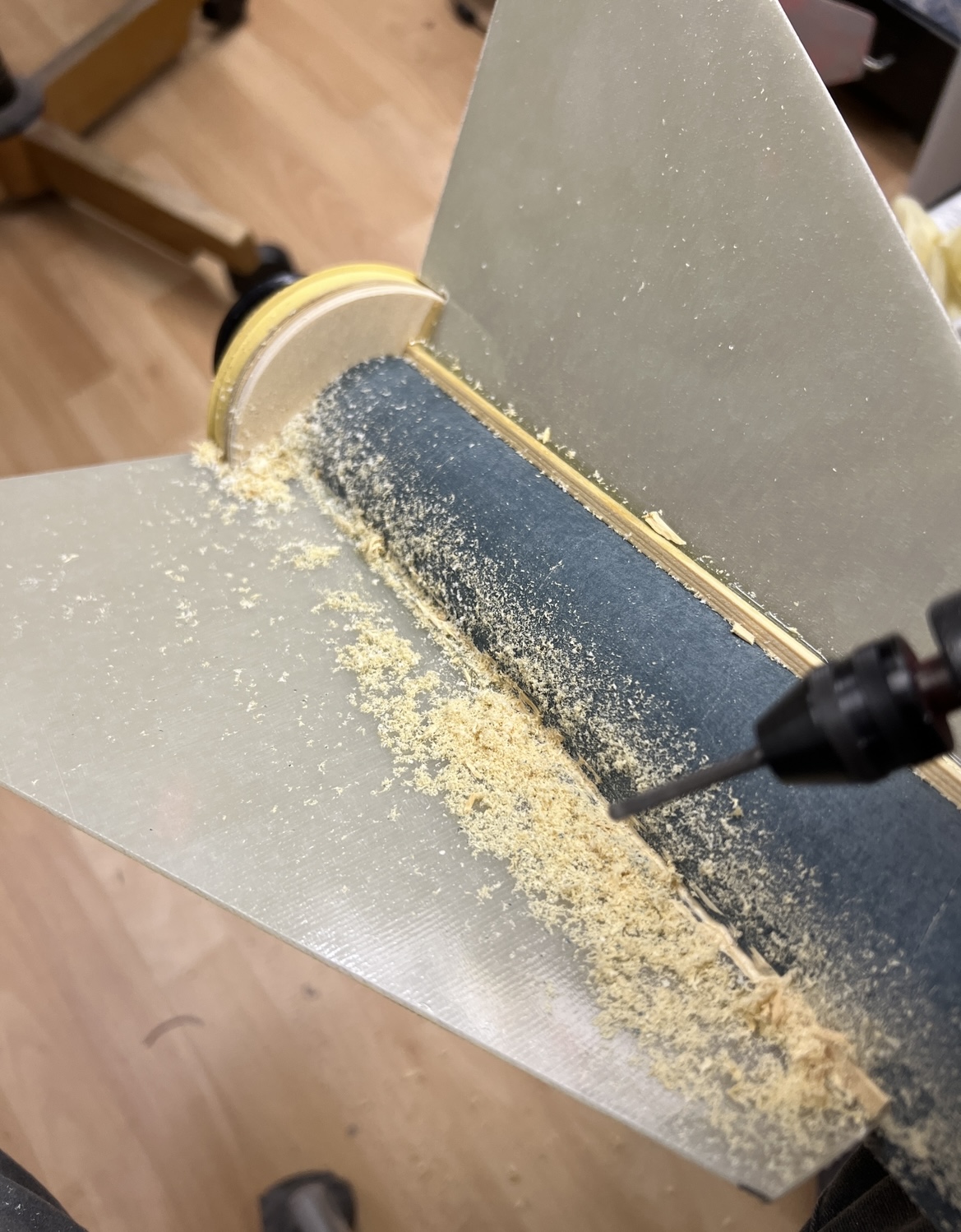 So Finne ist wieder dran und gerade … samt Kanthölzer und Harz … Auch der erste Spant ist zentriert und fixiert … Eigentlich war der Plan in der unteren Sektion fin root zu fin root zu verglasen … ich habe es mit verschiedenen Flächen Gewichten und verschiedene Harzen versucht … keine Chance … durch die holzleisten und die „scharfen“ Kanten haben sich die Matten ständig wieder abgelöst… dafür bräuchte ich vacuum etc .. also umgeplant und für große Fillets entschieden… Der Spant wurde auch direkt mit fillets versehen .. Grüße Marco