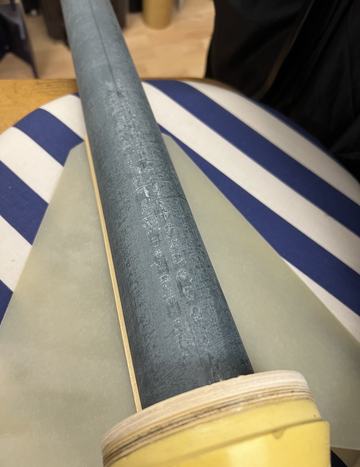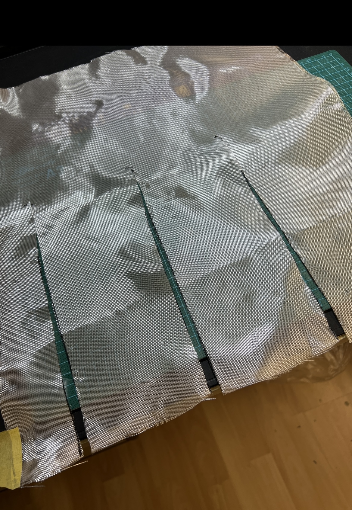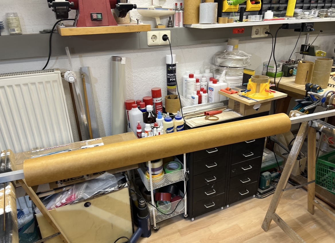 So simple sehen die Halter aus … Alles wurde noch ordentlich angeschliffen und entsprechend Abgeklebt das vor allem nichts auf die Coupler Fläche kommt … Dann habe ich versucht die Matten und das Abreisgewebe entsprechend zu zu schneiden … Über den Teil für die Hecksektion habe ich länger gegrübelt … ich wollte möglichst die gesamte Fläche gleichmäßig bedeckt sein und möglichst keine Überlappungen die man später sehen könnte … deshalb habe ich die Position der Finnen entlang der aufgewickelten Matte angezeichnet und eingeschnitten.. Danach wurde endlich laminiert … Das Abreisgewebe ist dran … an der Hecksektion habe ich allerdings nur den vorderen Teil umwickelt … beim nächsten mal werde ich auch kleine Stücke zwischen den Flossen platzieren .. da hatte ich vorhin nicht richtig nach gedacht ;-) jetzt darf alles durch hätten … war deutlich mehr Arbeit als gedacht … zum Glück lohnt es sich ! Viele Grüße Marco