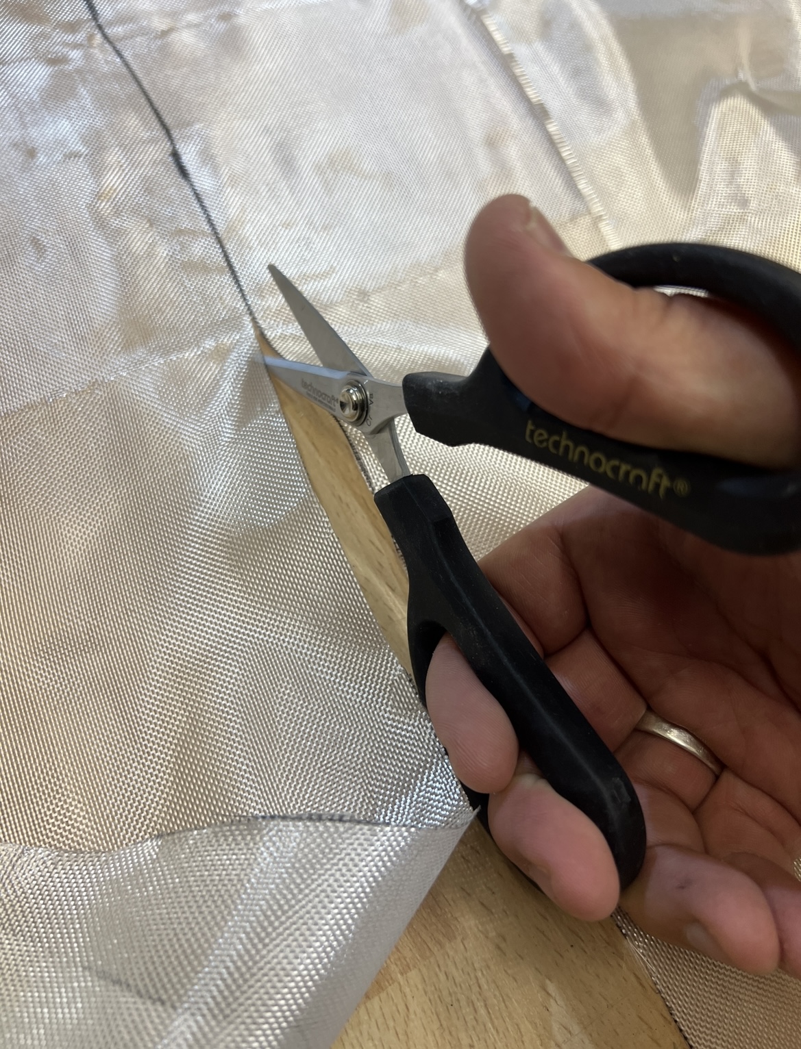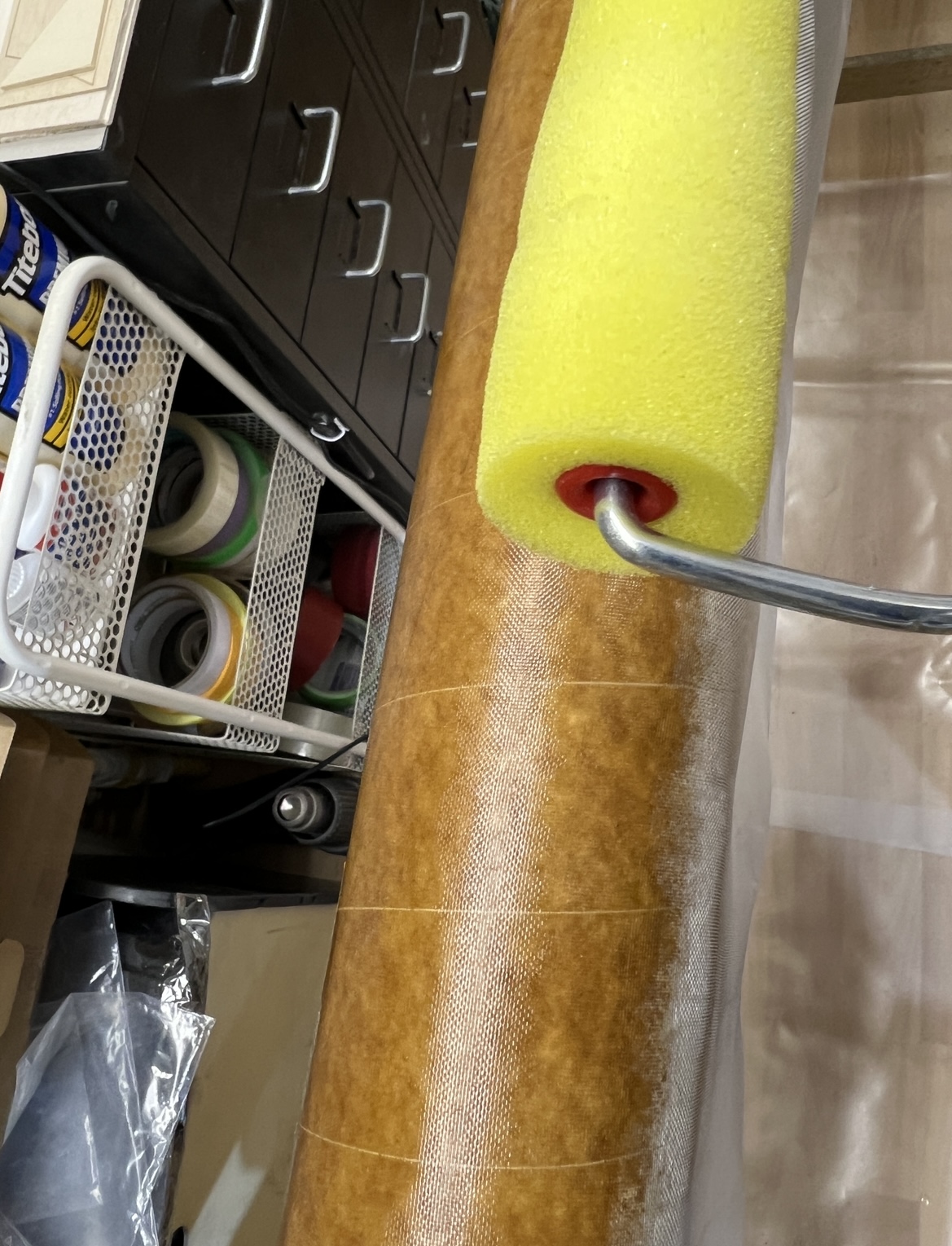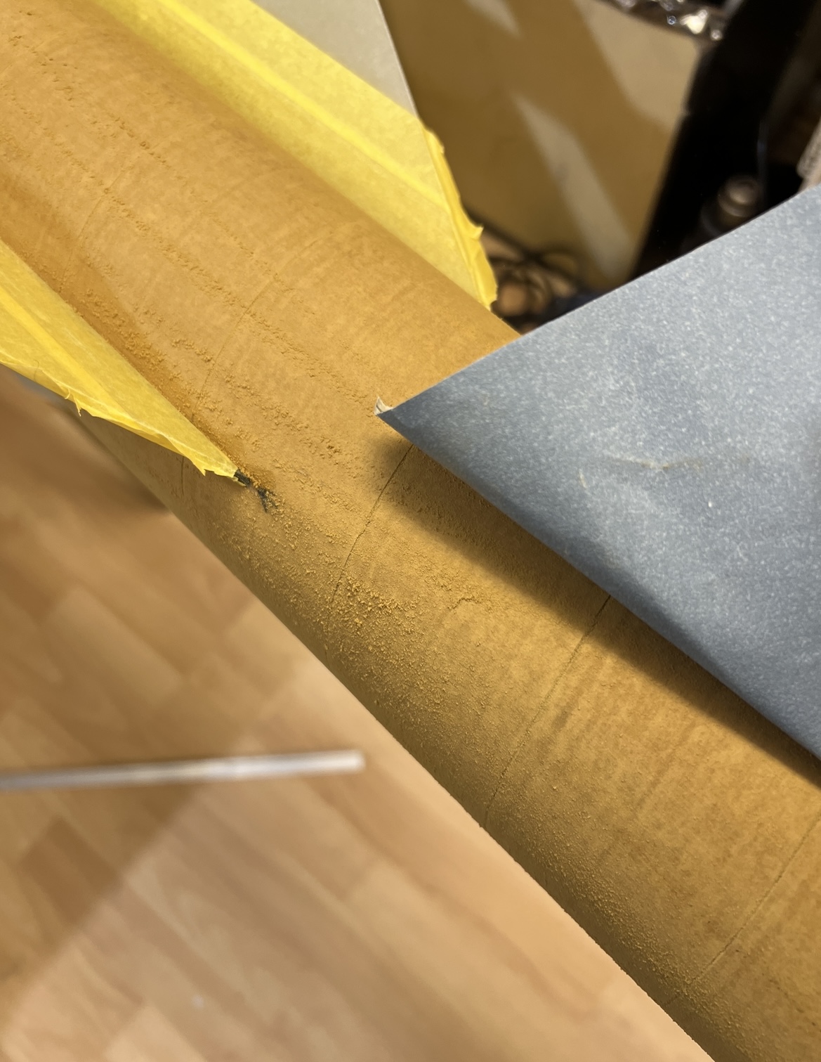 So simple sehen die Halter aus … Alles wurde noch ordentlich angeschliffen und entsprechend Abgeklebt das vor allem nichts auf die Coupler Fläche kommt … Dann habe ich versucht die Matten und das Abreisgewebe entsprechend zu zu schneiden … Über den Teil für die Hecksektion habe ich länger gegrübelt … ich wollte möglichst die gesamte Fläche gleichmäßig bedeckt sein und möglichst keine Überlappungen die man später sehen könnte … deshalb habe ich die Position der Finnen entlang der aufgewickelten Matte angezeichnet und eingeschnitten.. Danach wurde endlich laminiert … Das Abreisgewebe ist dran … an der Hecksektion habe ich allerdings nur den vorderen Teil umwickelt … beim nächsten mal werde ich auch kleine Stücke zwischen den Flossen platzieren .. da hatte ich vorhin nicht richtig nach gedacht ;-) jetzt darf alles durch hätten … war deutlich mehr Arbeit als gedacht … zum Glück lohnt es sich ! Viele Grüße Marco