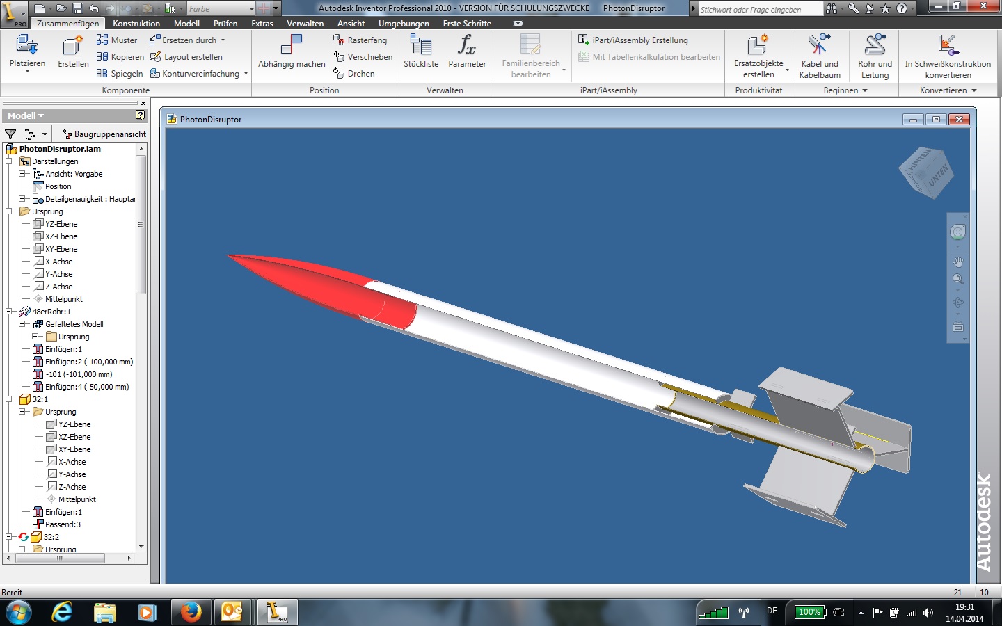 Mit Inventor arbeite ich auch oft, ist aber ein dickes Ding, das dauert eine Weile bis man damit arbeiten kann. Zum Raketenbauen nehme ich das aber nicht, ist dafür zu kompliziert, finde ich. Bis man die ganzen Teile zusammen hat ist man ganz schön lange am konstruieren. Ansonsten ist das schon eine coole Software.