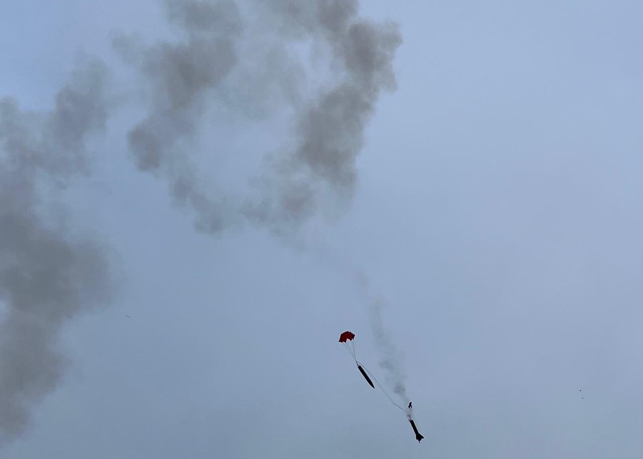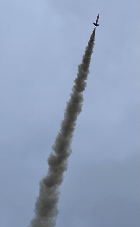 Leider platzte der mittlere D9 kurz nach der Rampe, wodurch auch die Trennung der Rakete erfolgte