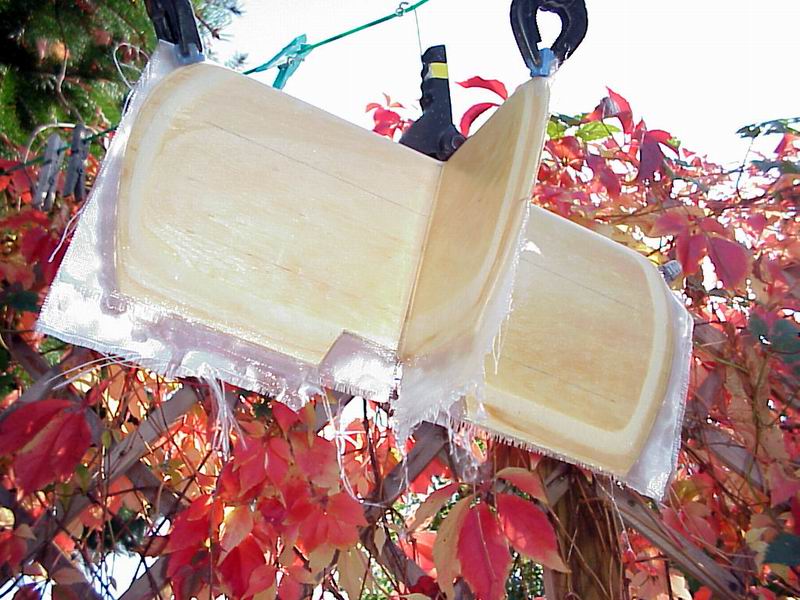 ...das belegen des Leitwerkes mit Harz und Glasgewebe.